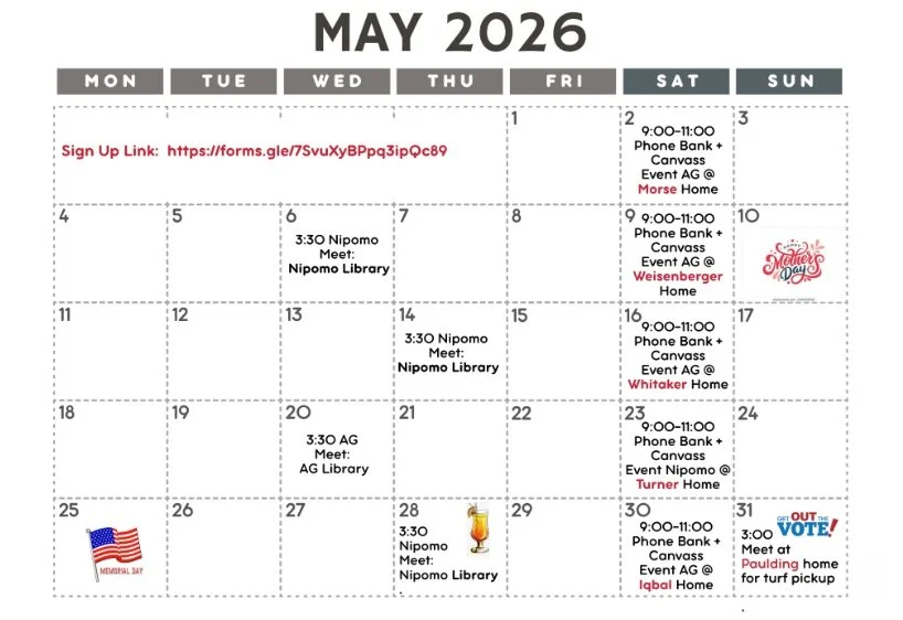 If you haven’t canvassed for Jimmy Paulding, NOW is the time! There is nothing more important we can do to protect democracy in our own backyard than re-elect Jimmy as our District 4 rep on the SLO County Board of Supervisors. Please email southcountydems805@gmail.com if you need training/assistance.